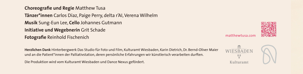 Erst in der Palliativmedizin wird man damit konfrontiert, von Angesicht zu Angesicht – oft gefürchtet, doch kein Ort des Endes. Eine Zwischenstation, an der Zeit und Leben noch Raum finden. In dieser Aufführung wird dieser Prozess zum Ausdruck gebracht: was schwerkranke Patientinnen und Patienten in ihrer letzten Lebensphase erleben und empfinden.